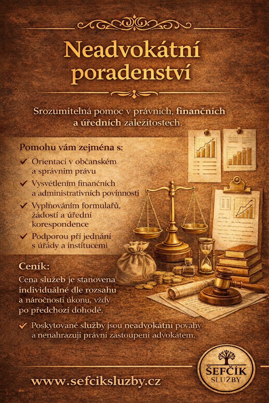 Vedle genealogických služeb zde naleznete také poradenství v oblasti finančního a správního práva, poskytované jako neadvokátní činnost v souladu s platnou legislativou. Cílem je nabídnout srozumitelnou orientaci v praktických otázkách a správních postupech.